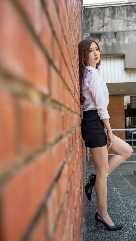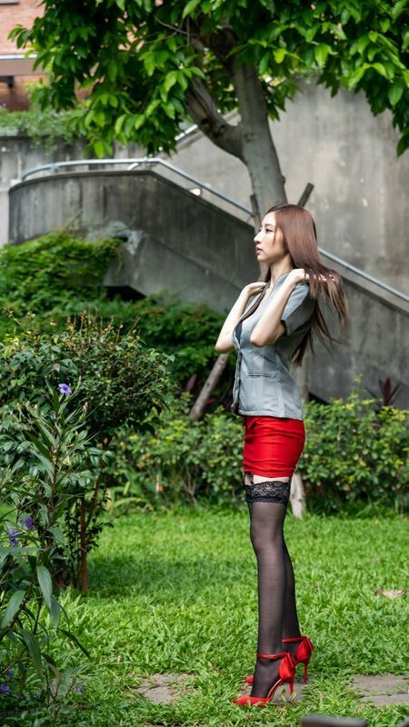 台模美腿系列长腿美模翁宁宁OL短裙高跟美腿外拍
