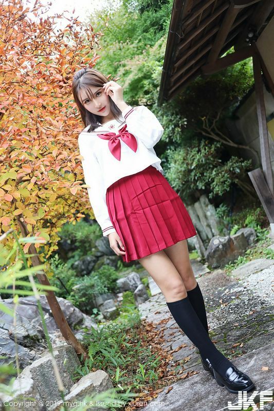 女神SOLO尹菲日本旅拍户外红色学生制服清爽迷人写